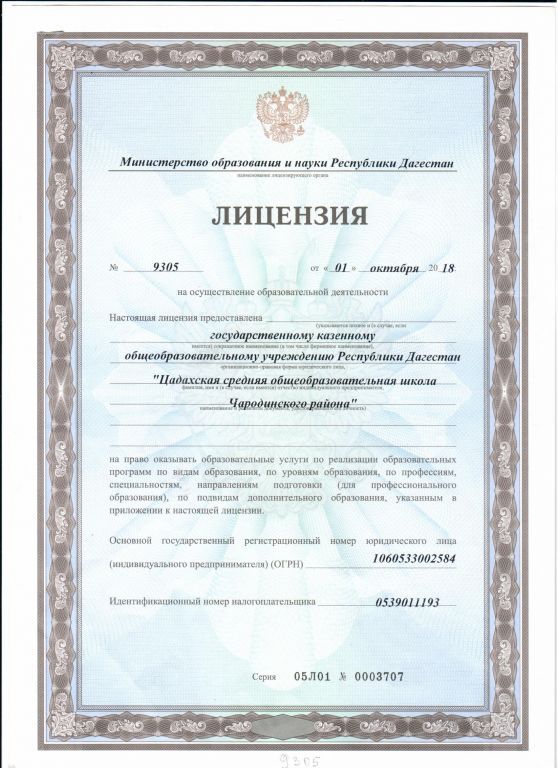 Полное наименование образовательной организации* Государственное казенное общеобразовательное учреждение Республики Дагестан "Цадахская средняя общеобразовательная школа Чародинского района"